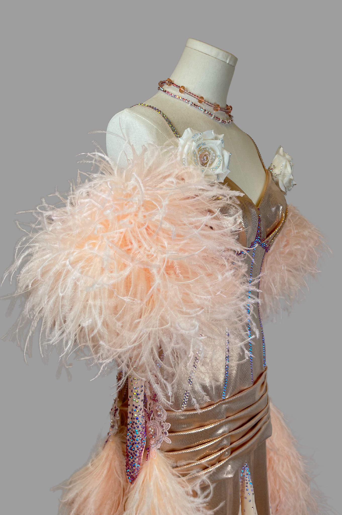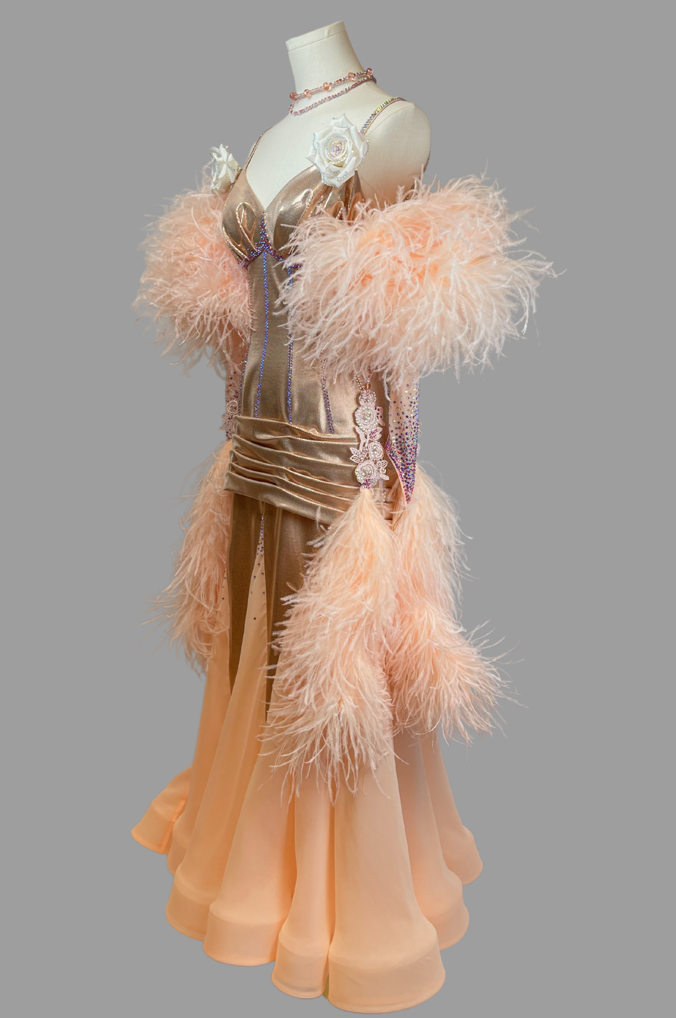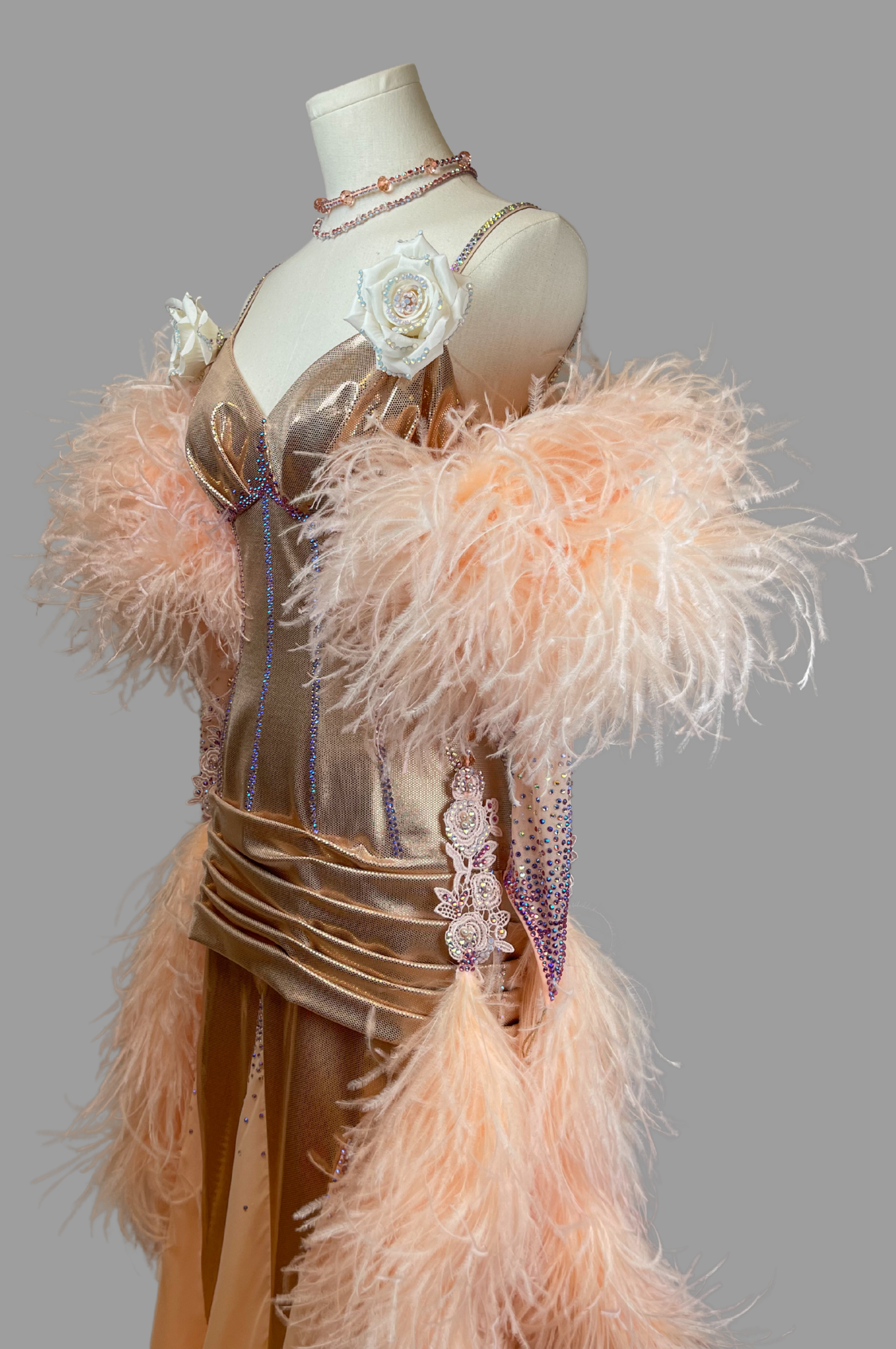A flowing, hand-decorated standard dress crafted to shine on the floor.