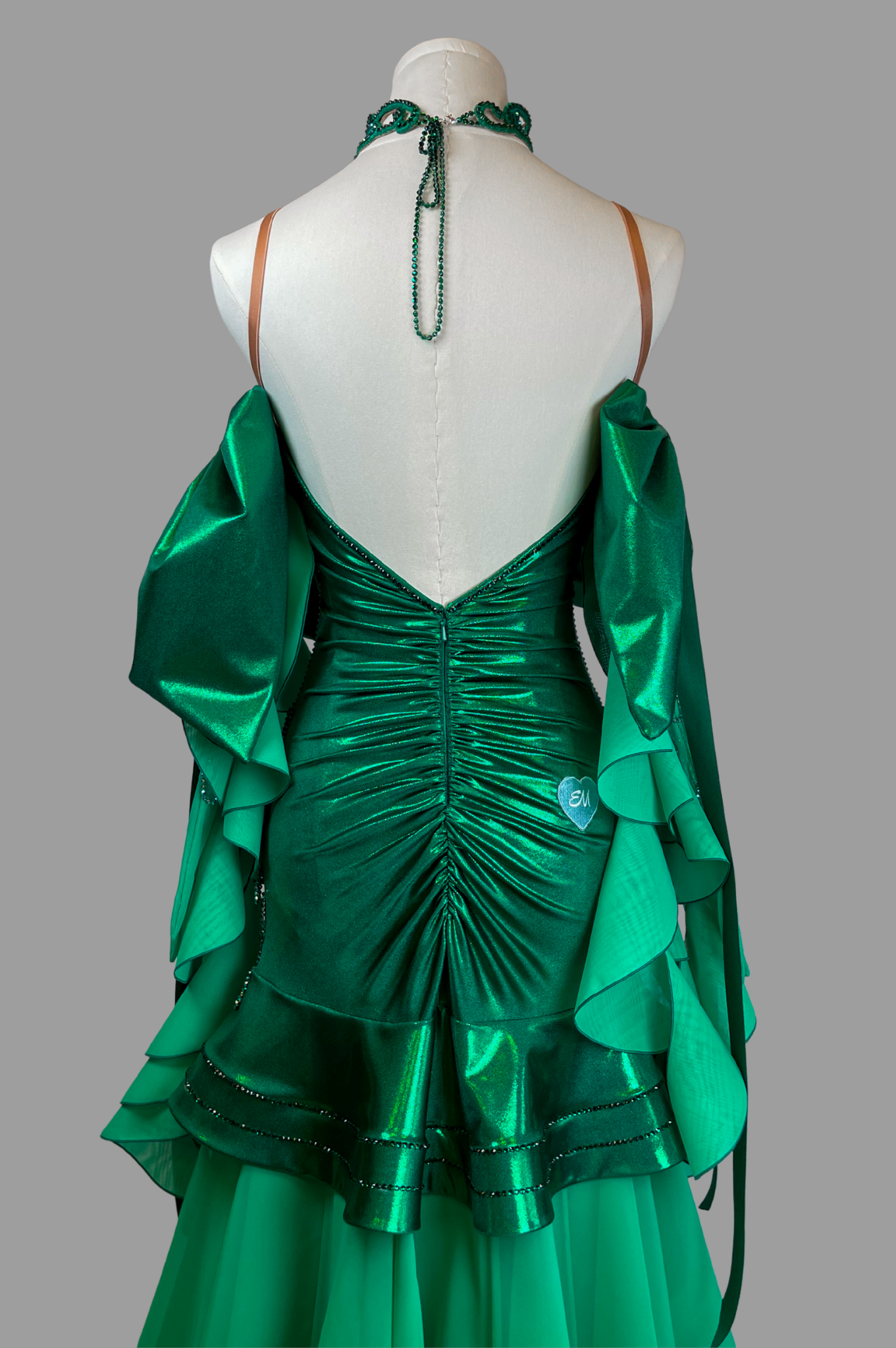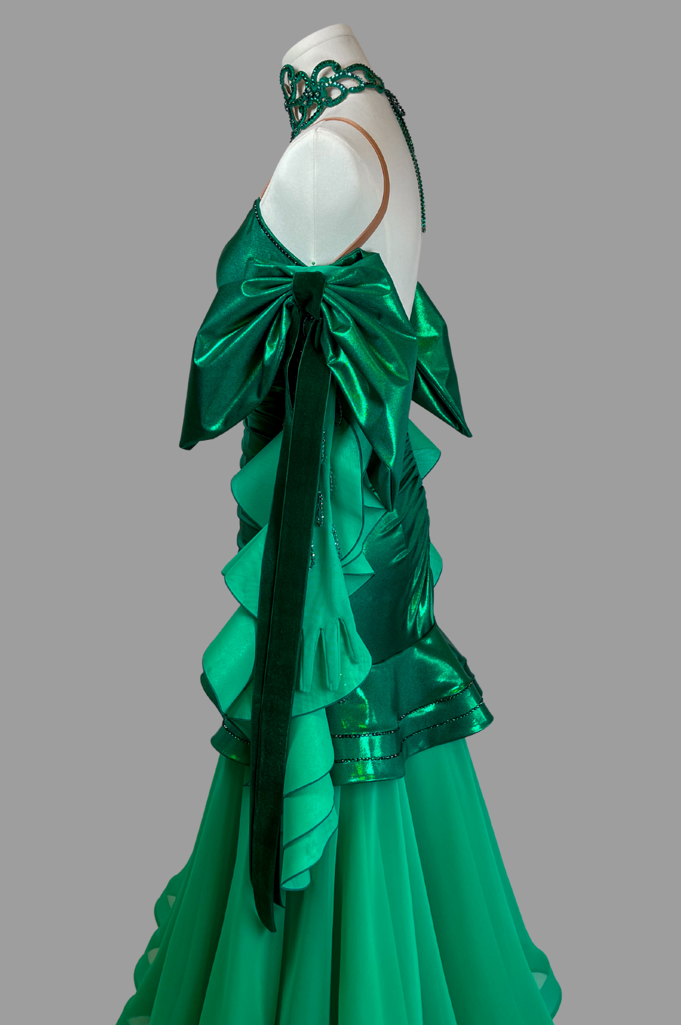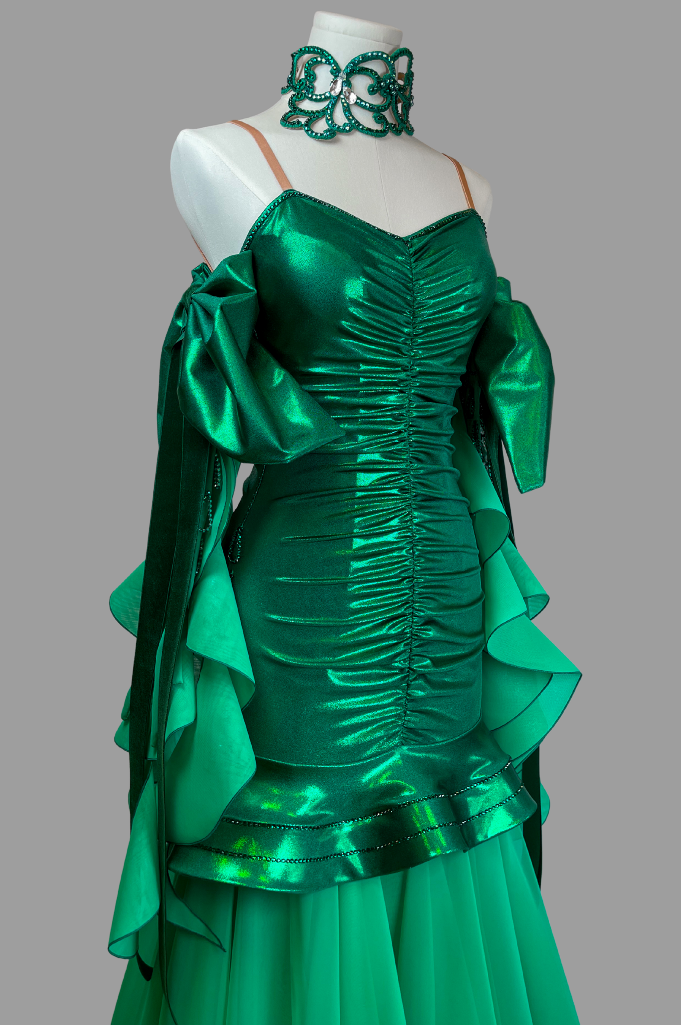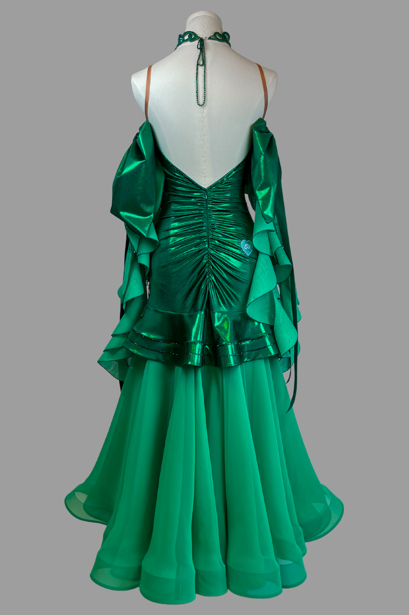 A flowing, hand-decorated standard dress crafted to shine on the floor.