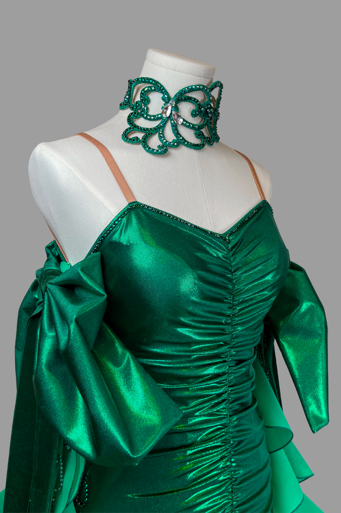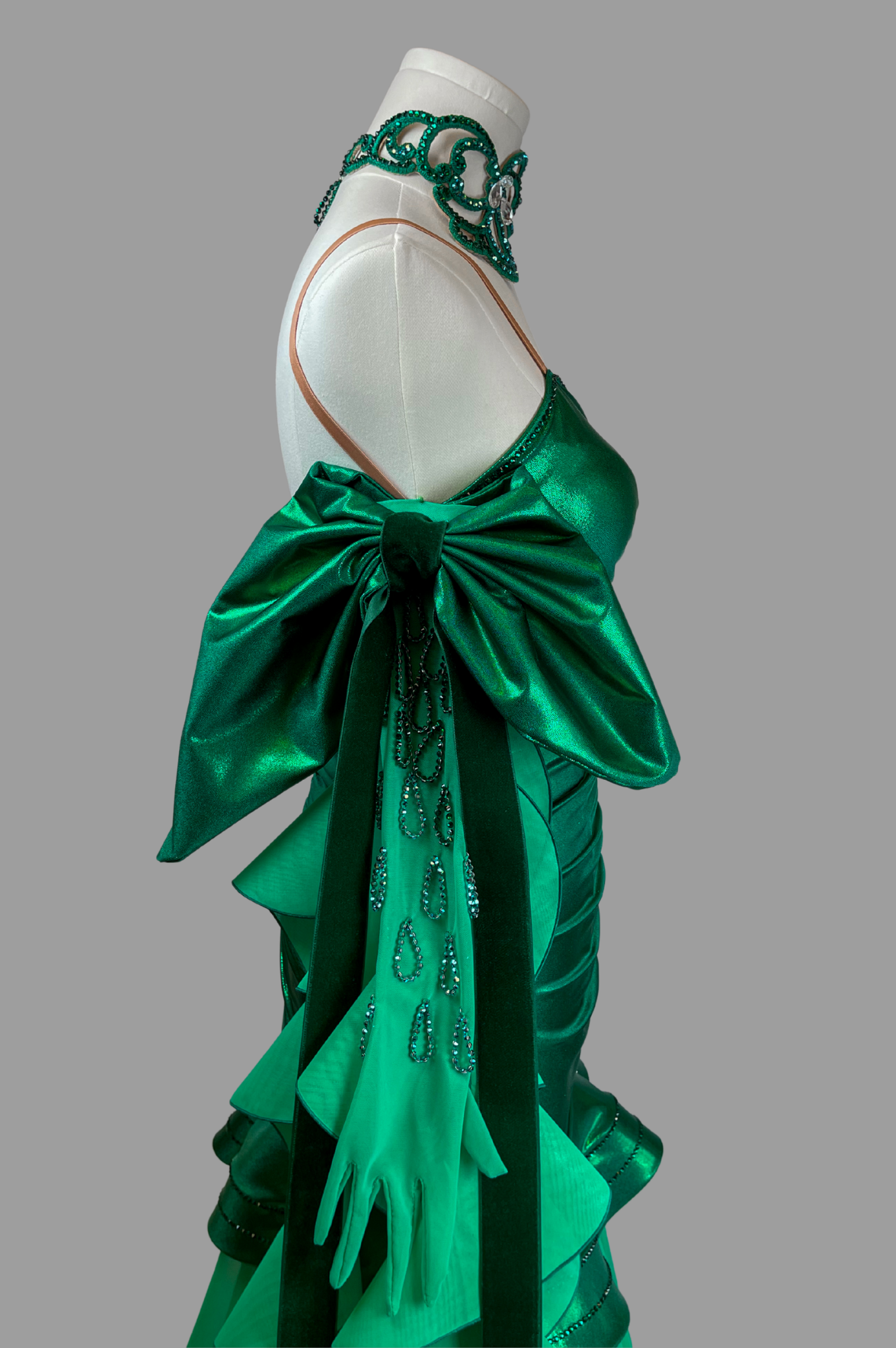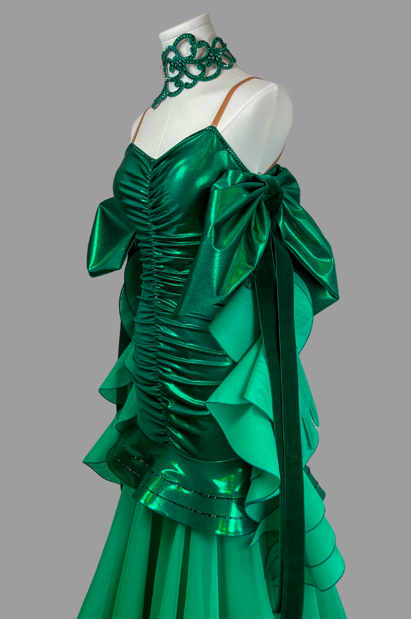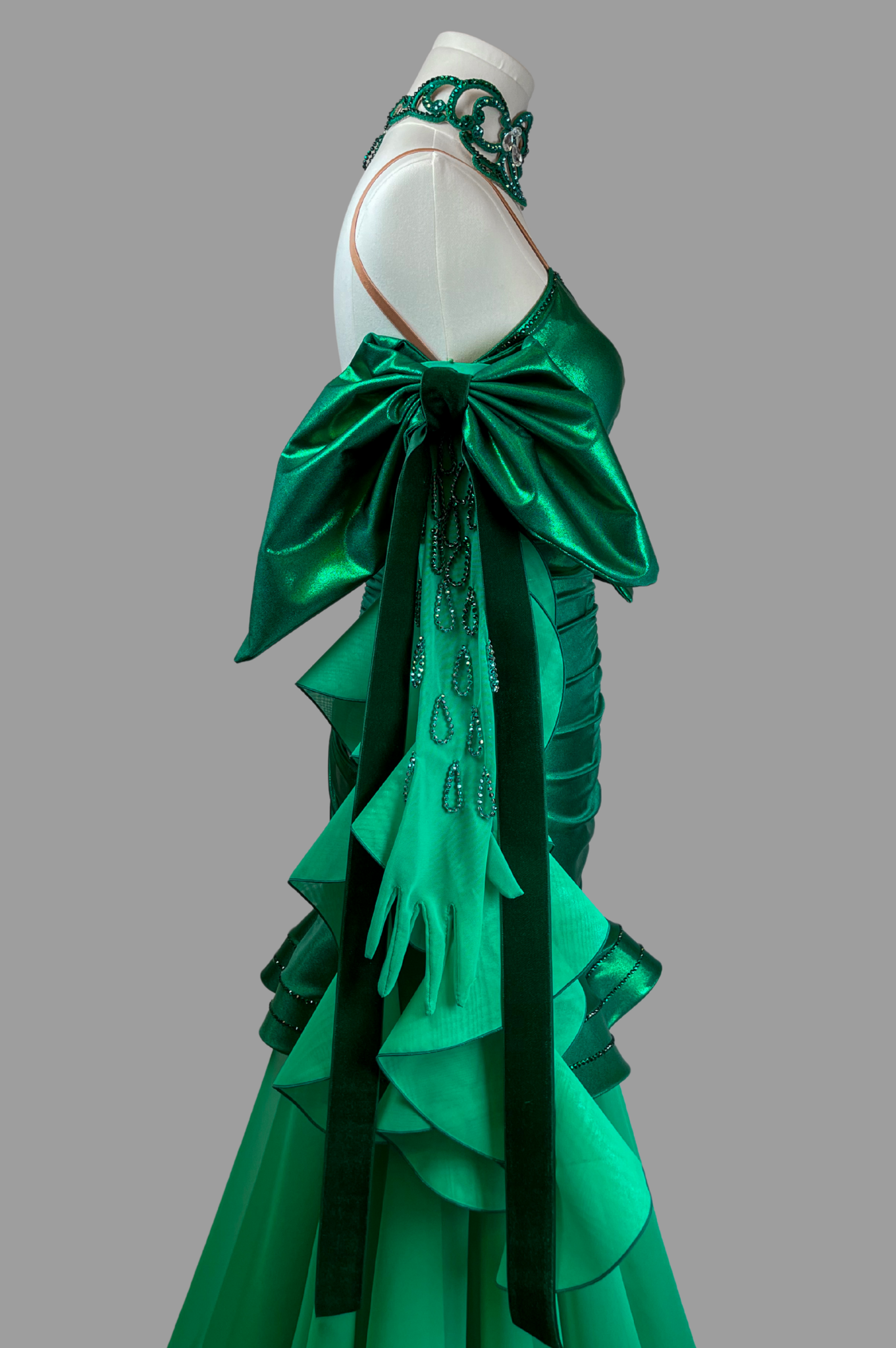 A flowing, hand-decorated standard dress crafted to shine on the floor.