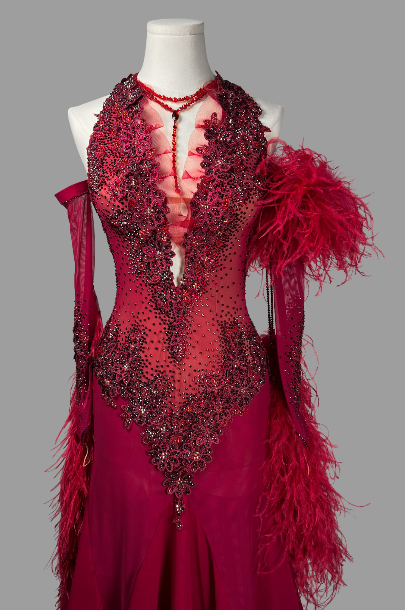 A flowing, hand-decorated standard dress crafted to shine on the floor.
